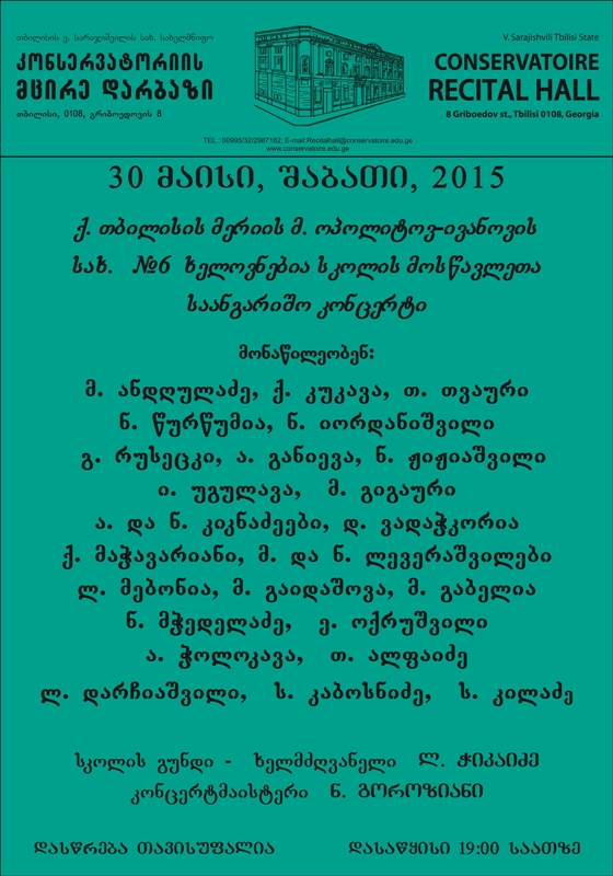 საავტორო უფლებები © თბილისის ვ. სარაჯიშვილის სახელობის სახელმწიფო კონსერვატორია 2026
