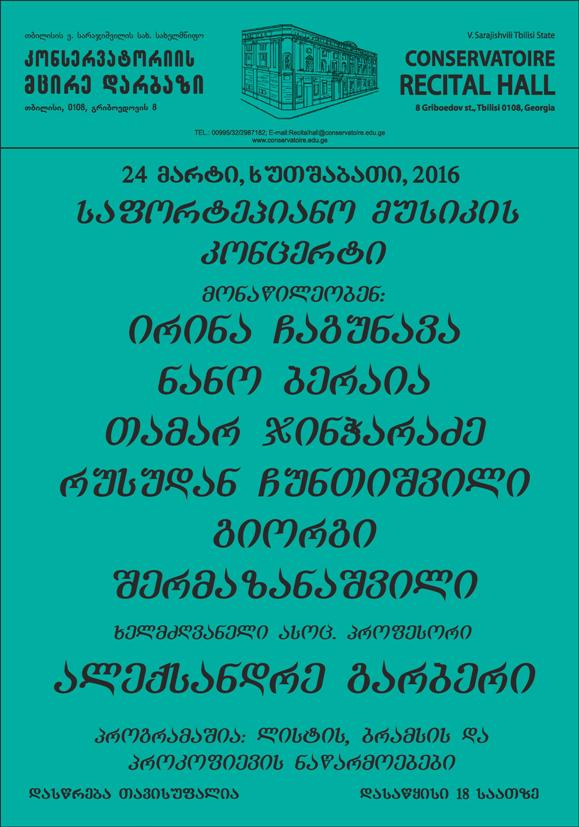 საავტორო უფლებები © თბილისის ვ. სარაჯიშვილის სახელობის სახელმწიფო კონსერვატორია 2026