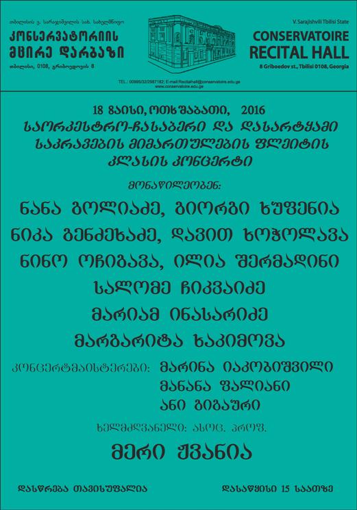 საავტორო უფლებები © თბილისის ვ. სარაჯიშვილის სახელობის სახელმწიფო კონსერვატორია 2026