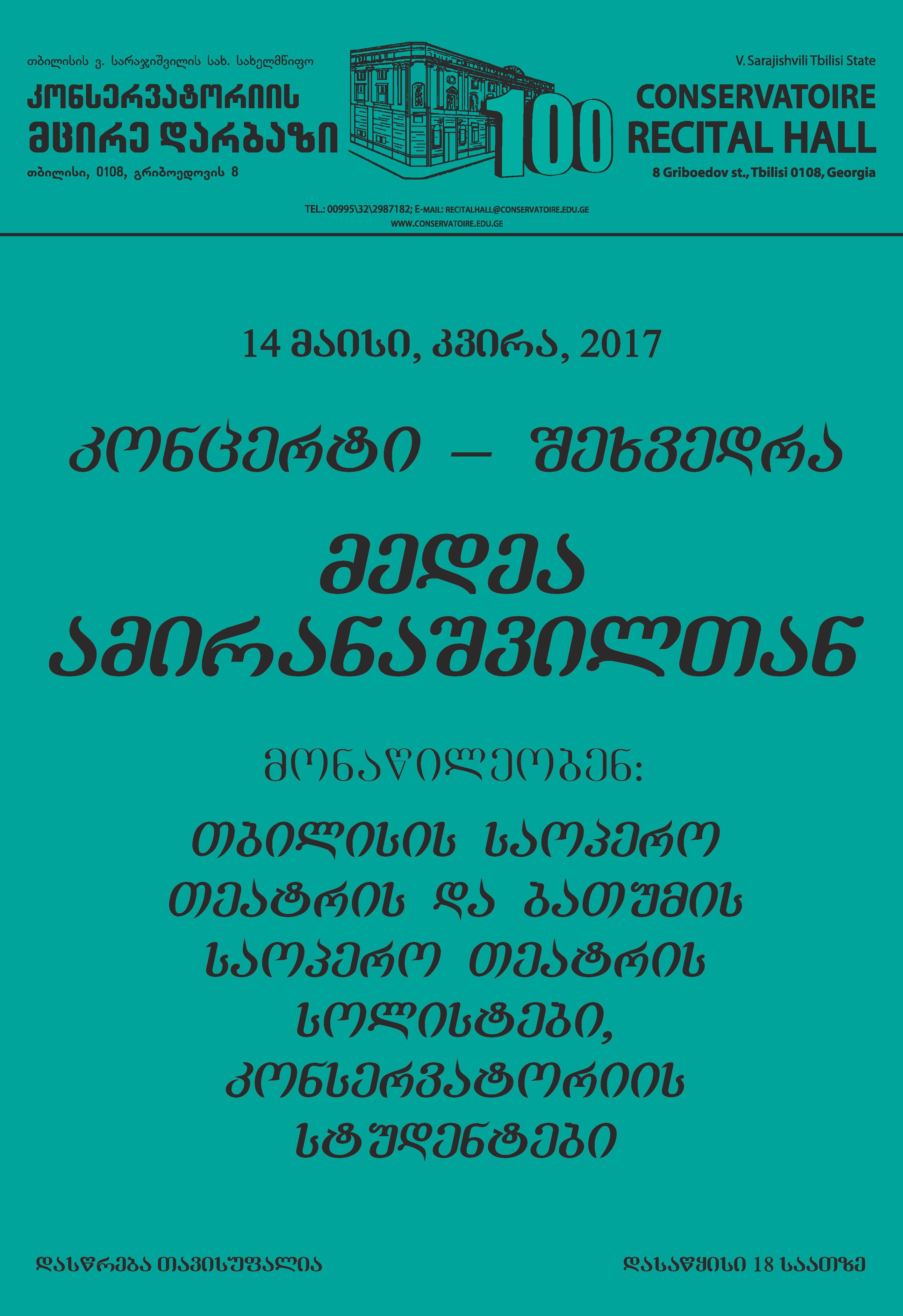 საავტორო უფლებები © თბილისის ვ. სარაჯიშვილის სახელობის სახელმწიფო კონსერვატორია 2026